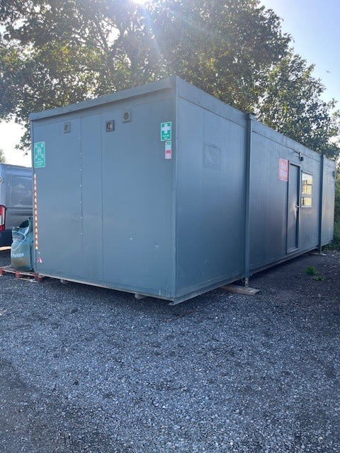- ViewWelfare Unit / Container - 9.4m long x 2.8m wideContains: kitchen area, toilet facilities, drying room / storage room, seating area, small office space. Plug in electrics, mains water is push-fit connection. Kitchen sink and toilet basin have overhead electric hot water heaters.