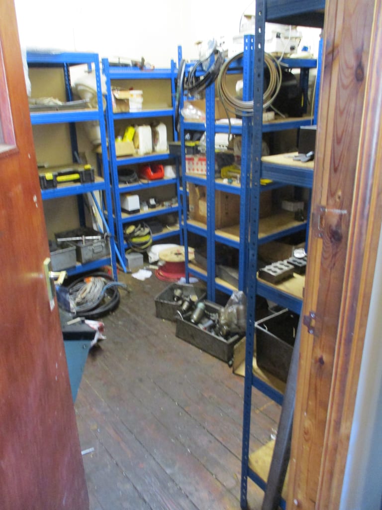 - ViewQuantity of Garage Style Shelving/Racking with ContentsIncluding (7) Racking with Dimensions Approx 900mm x 300mm x 1800mm, 5/7-Shelf Racks. Contents Include Chuck Jaws, Collets, Electrical Components, Electrical Cable, Air Hose, Machine Spares & Assorted Steel Tote Pans.