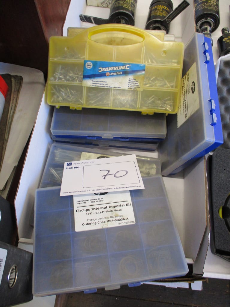 - View(7 Sets) Assorted Circlips in BoxesIncluding Sets of Circlips, Rivets & Cotter Pins