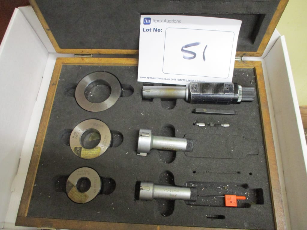 - ViewBowers (3 Piece) Digital 3-Point Bore Micrometers in Wooden Box20mm - 50mm Range, (3) Setting Rings.