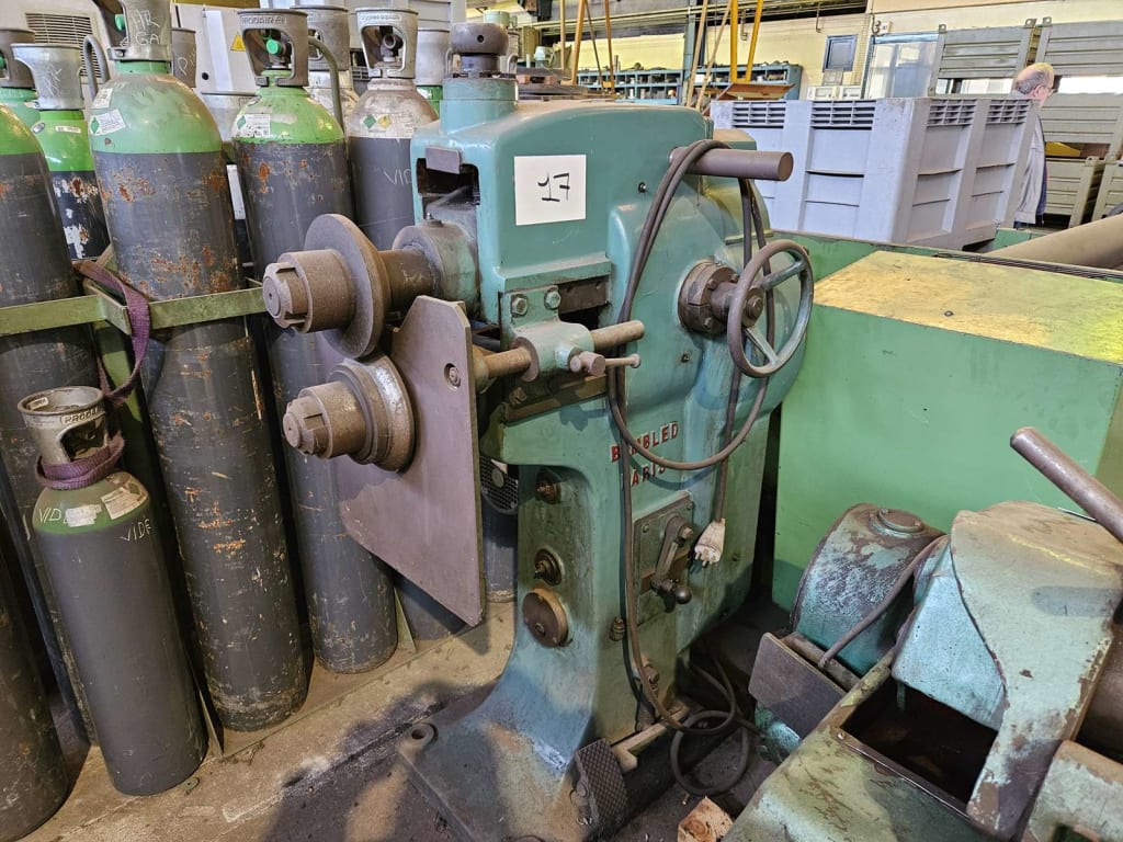 max. thickness 6 mm - distance between rollers/gooseneck 475 mm - max. Ø allowed 1600 mm - 2 working speeds - 6 and 12 m/min - 5 hp motor - weight approx. 2000 kg - made in France
